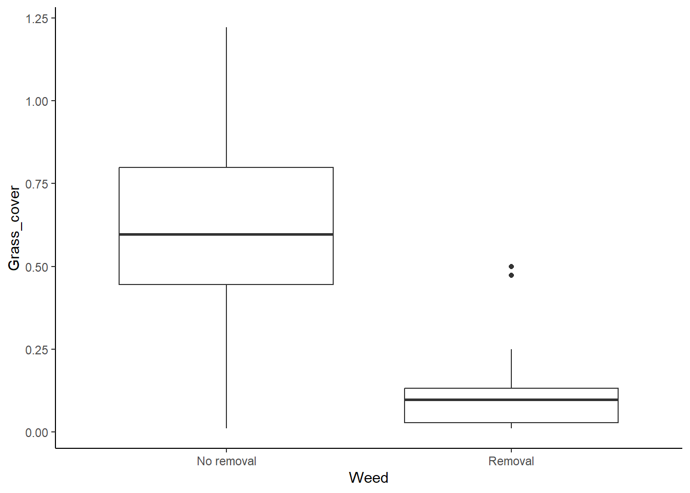 grass_ttest <- lm(Grass_cover ~ Weed, data = grass)