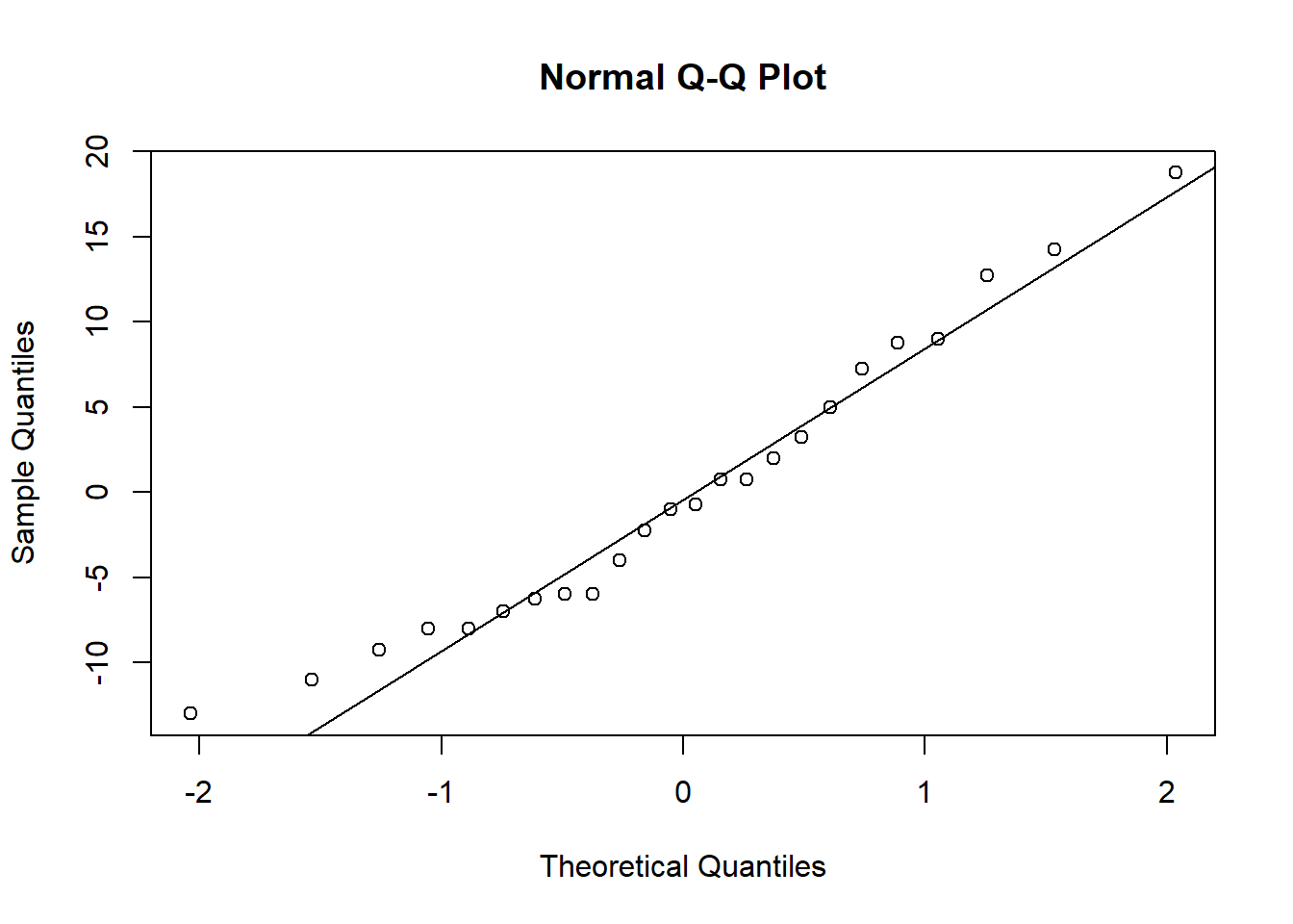 For the sake of time, we won’t check the residuals here (I can tell you that they aren’t quite normal but are also not particularly skewed), but normally that is something you should do, following the same procedure you used for the kidney example. From the scatterplot we made, you can see the the variances are roughly equal. Therefore, let’s go ahead and proceed with the test.