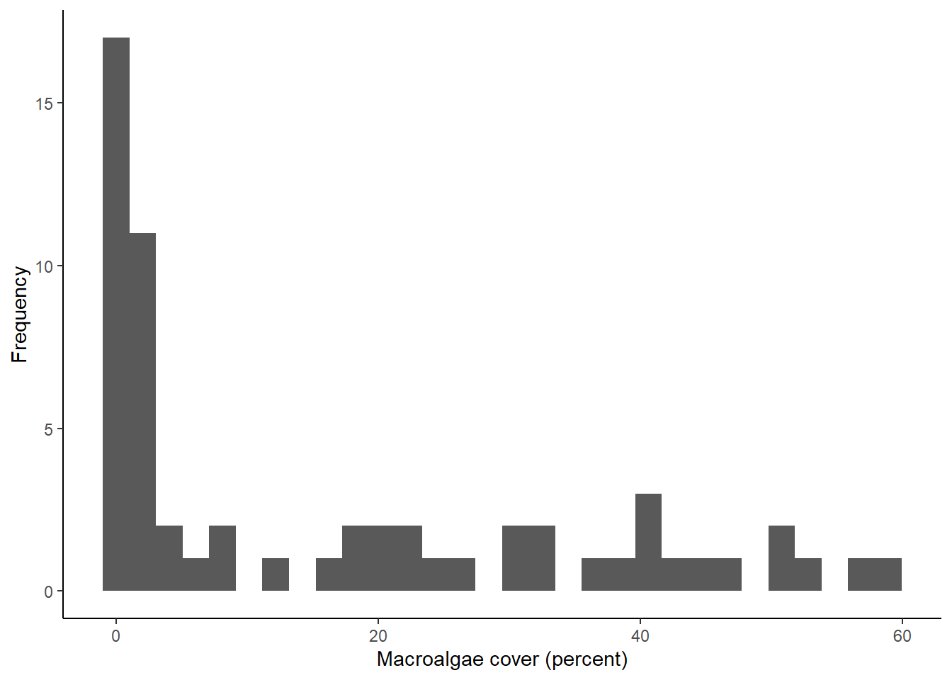 labs(x="Macroalgae cover (percent)", y="Frequency") +