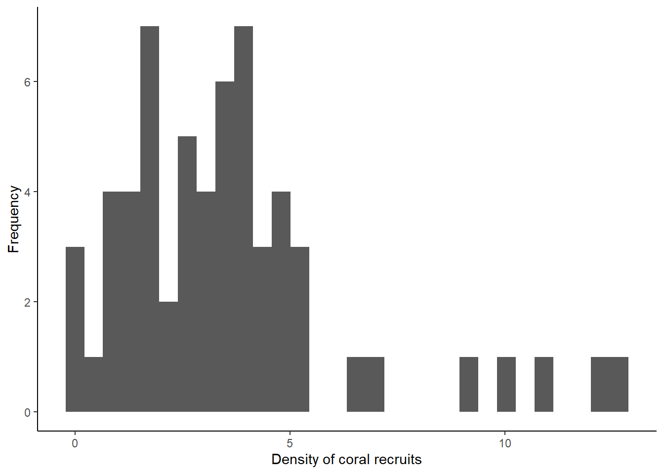 labs(x="Density of coral recruits", y="Frequency") +